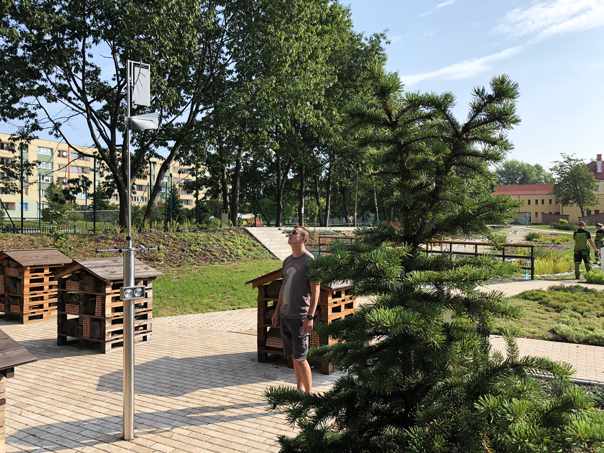 Strefę z 'hotelami' dla owadów wyposażyliśmy w Stację Meteo zawierającą: termometr, barometr oraz wskażnik kierunku oraz siły wiatru.